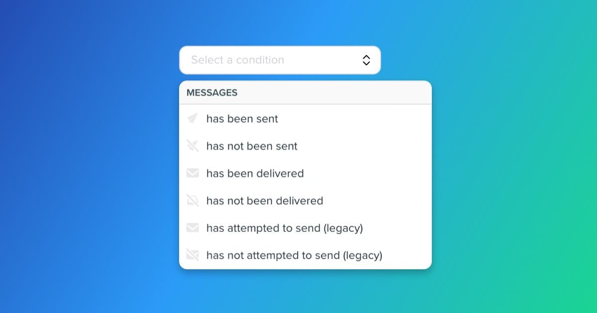 All users now have access to the full set of previously labeled “advanced” message conditions, which include filters for “attempted to send”, “sent”, and “delivered”.